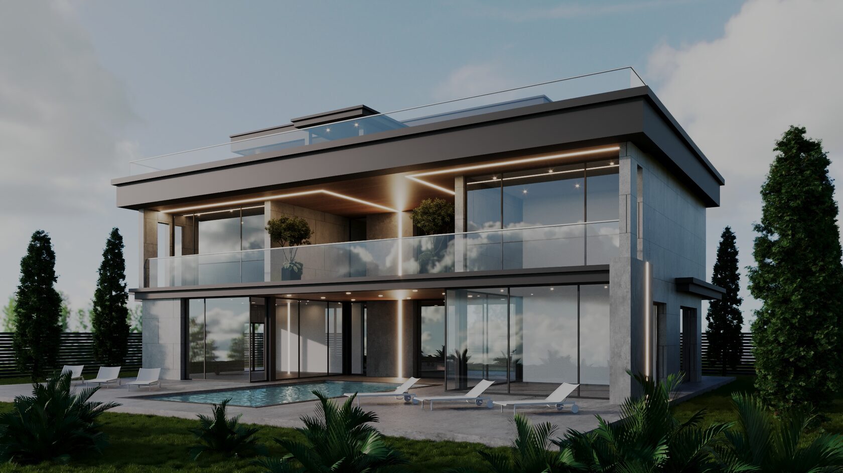 Современный минимализм, лаконичные формы, панорамные окна и рациональное зонирование создают ощущение простора и гармонии.